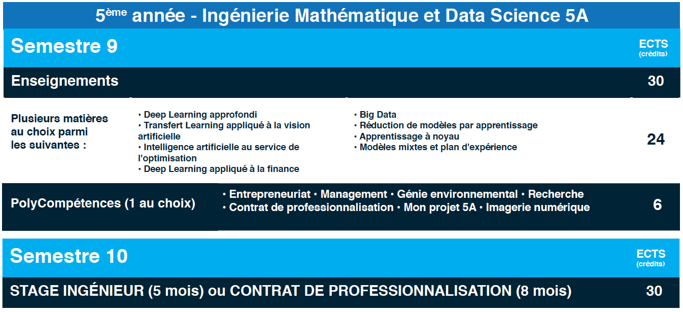 La formation Ingénierie Mathématique et Data Science recrute en cycle ingénieur :