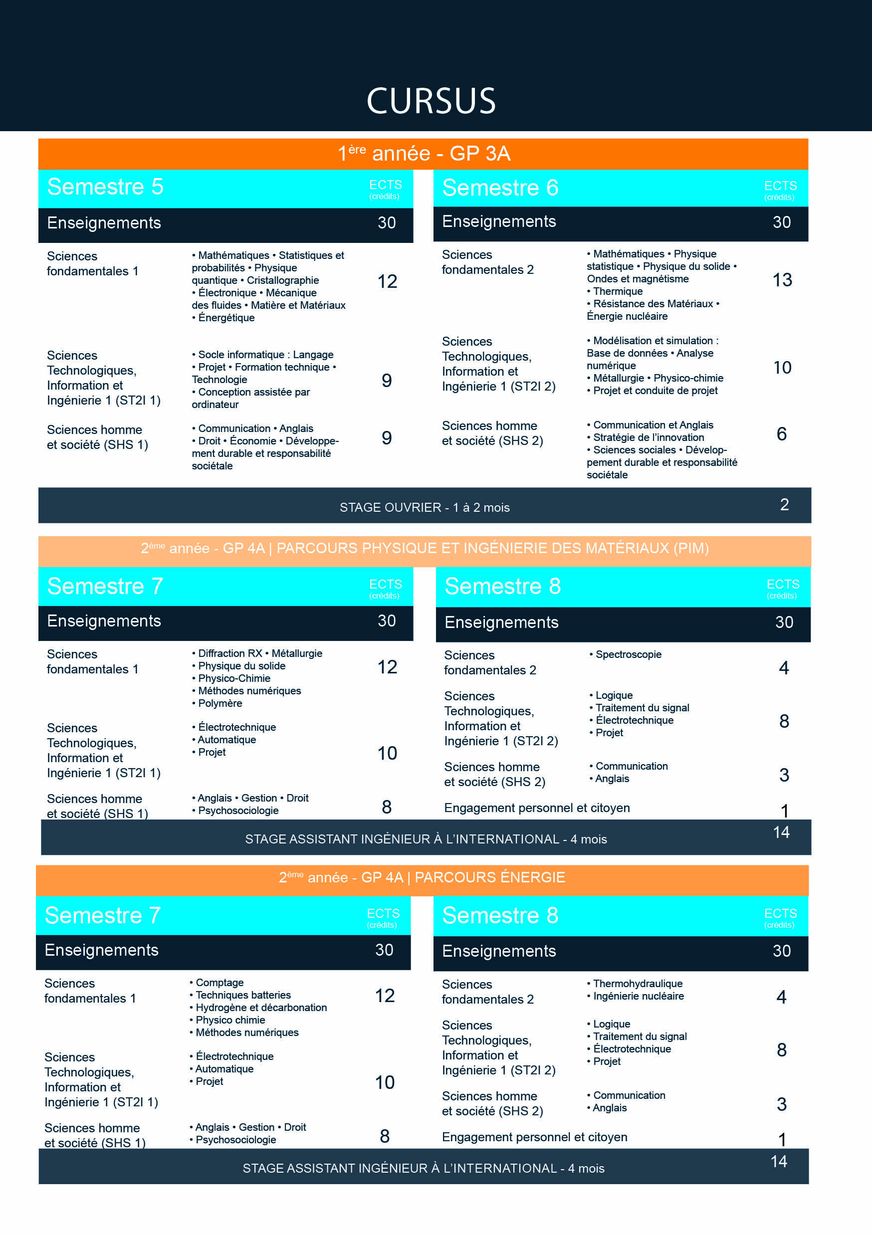 La formation Génie Physique recrute en cycle ingénieur :- des élèves issus de CPGE : MP, PC, PSI, PT, ATS, TSI