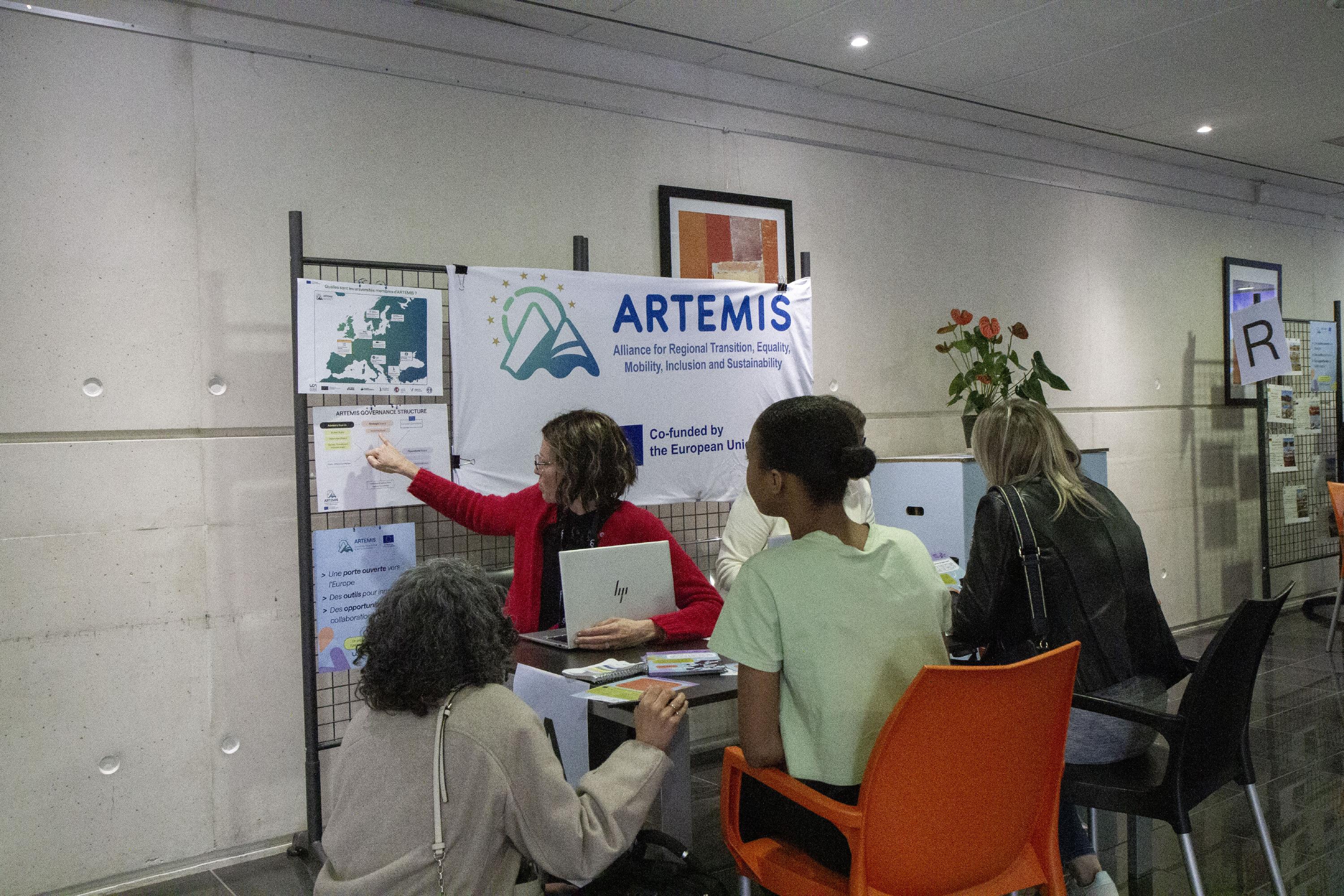 Pensé comme un parcours libre et convivial, l’événement réunissait étudiants, enseignants et personnels administratifs autour de sept stands thématiques, construits à partir de l’acronyme ARTEMIS. Mobilité internationale, inclusion, égalité, transition régionale… Chaque espace permettait de découvrir une facette de l’alliance, accompagnés par des acteurs de l’Alliance à l’UCA et les ambassadeurs étudiants, particulièrement mobilisés pour l’occasion.