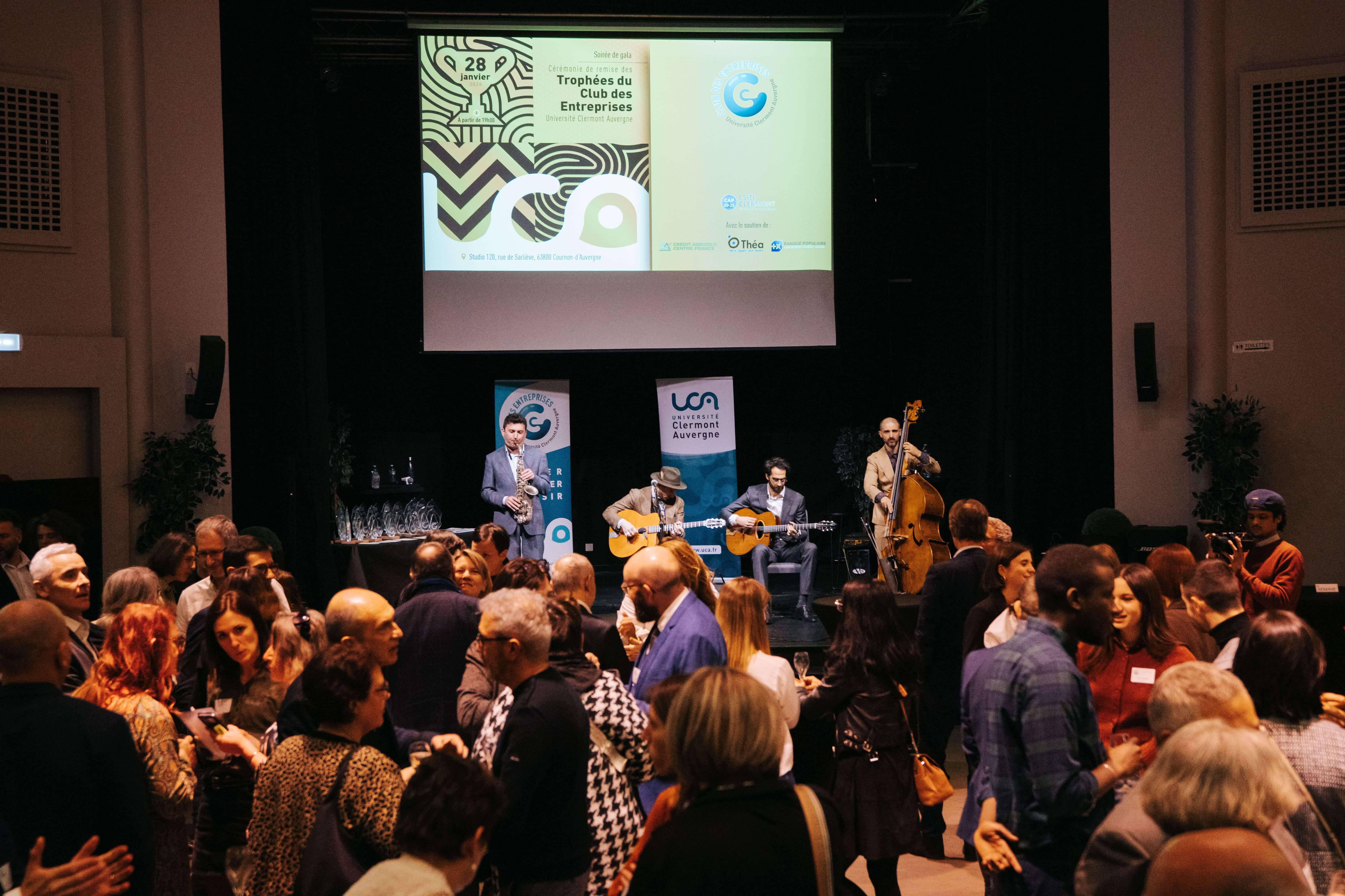 Le 28 janvier, le Club des Entreprises UCA organisait sa première cérémonie des Trophées, sous la présidence de Sophie MOMEGE et Mathias BERNARD. Une soirée pour mettre en lumière les collaborations entre étudiants de l’UCA, les structures d’accueil de stages ou d’alternance, et les formations universitaires de l’UCA. Retour en images sur cette soirée !