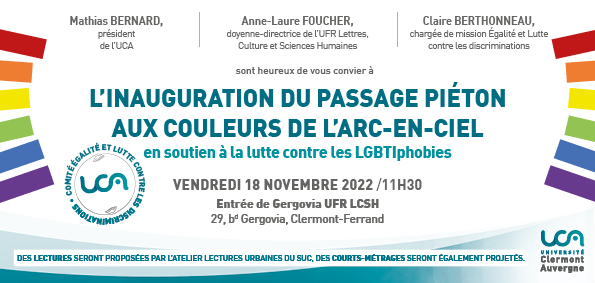 L'UCA s'engage dans la lutte contre la LGBTPhobie en Inaugurant un? nouveau passage Arc-En-Ciel tel celui de la place de Jaude.